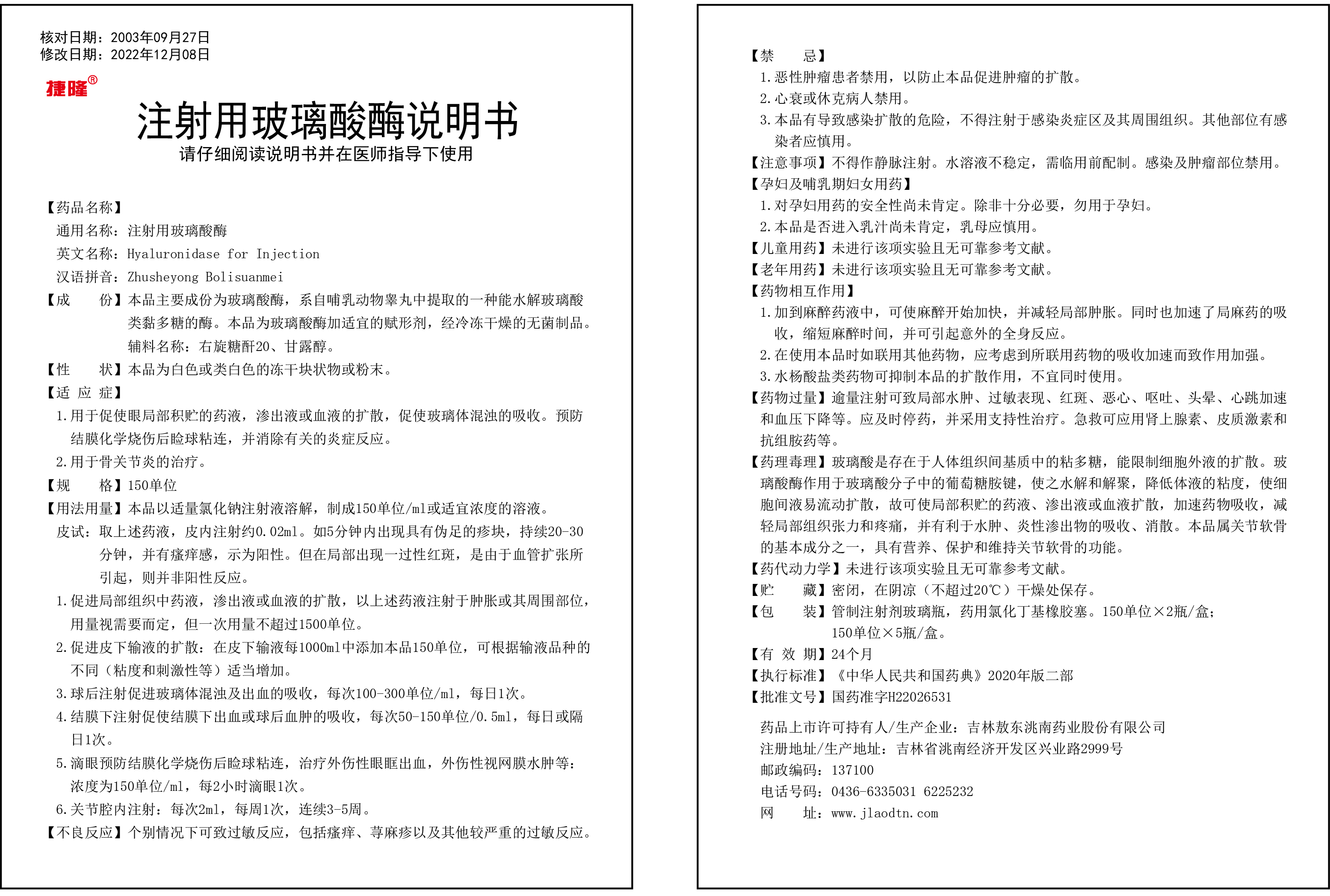 注射用玻璃酸酶