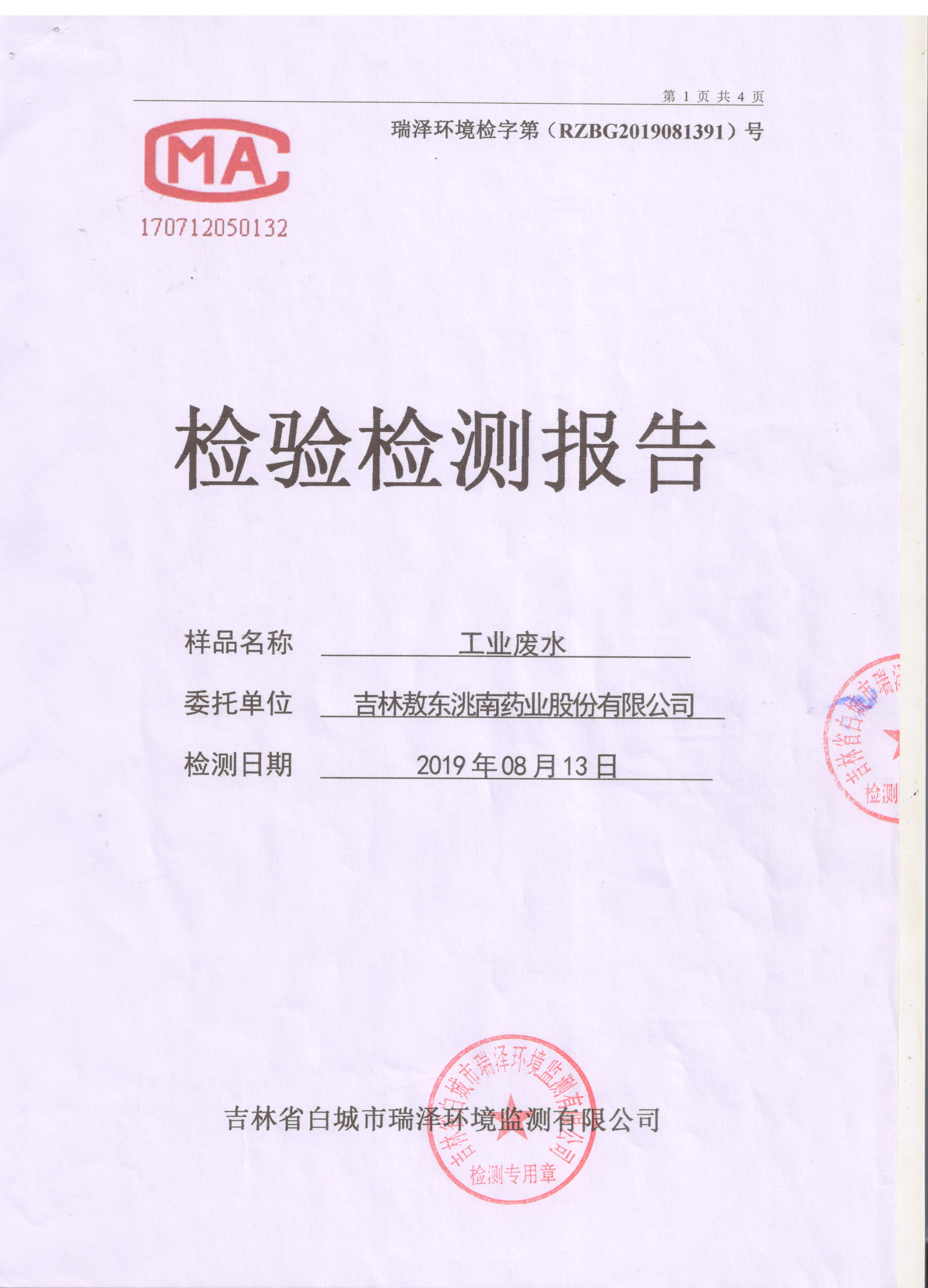 吉林敖東洮南藥業(yè)股份有限公司環(huán)保信息網(wǎng)上公示